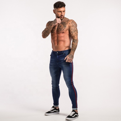 金格托现货低最小起订量手工红色条纹牛仔长裤街装男装牛仔裤